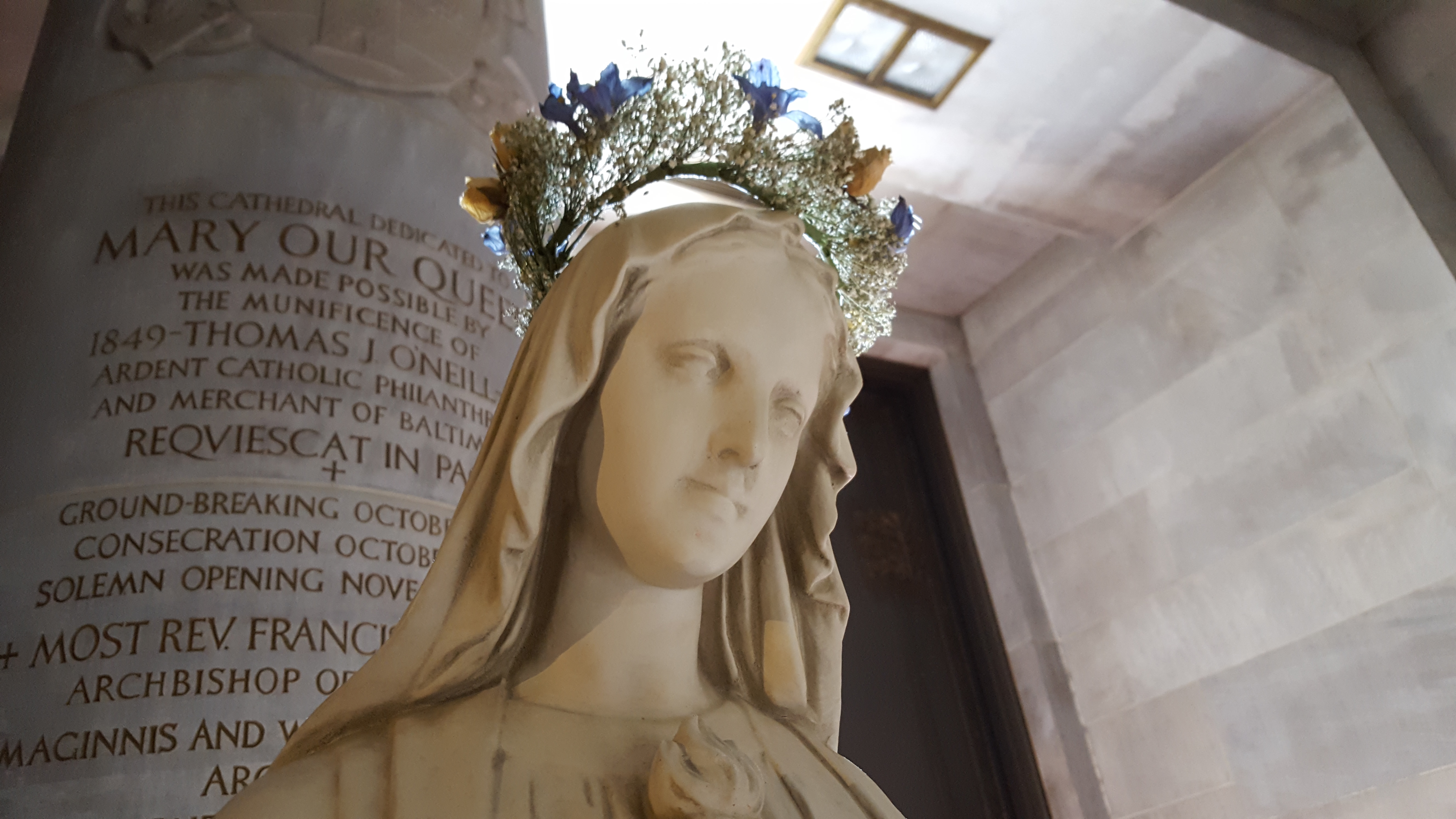 Before stepping back into the sunlight, Mary met me one more time in the form of a statue at the door. She had wreath of flowers on her head and a reassuring smile on her face.